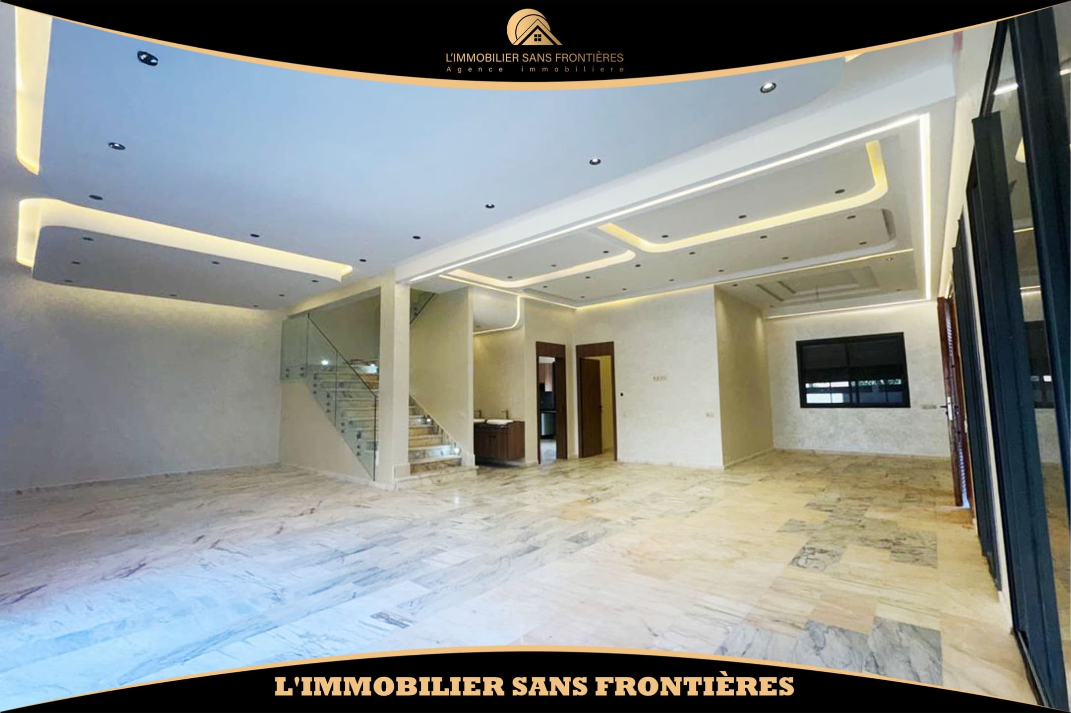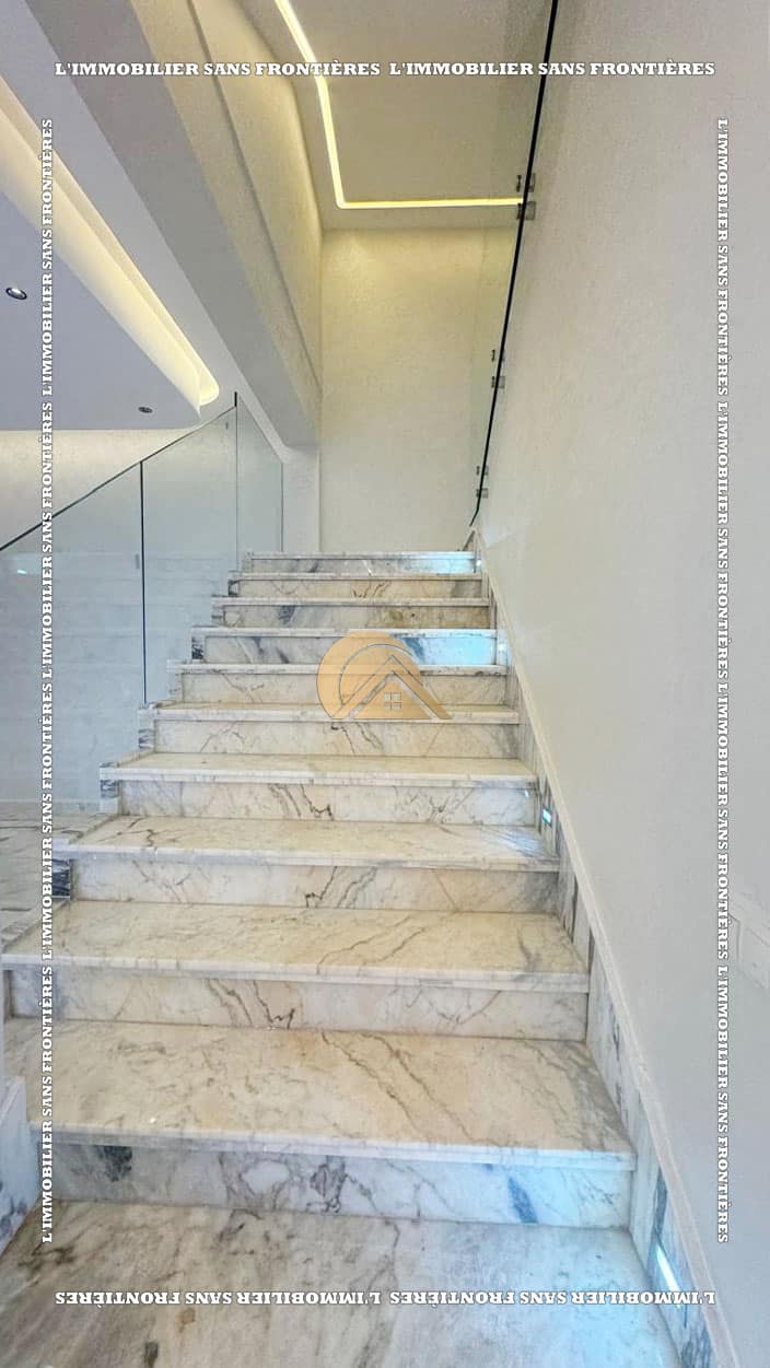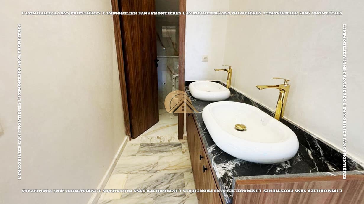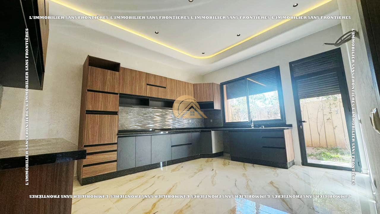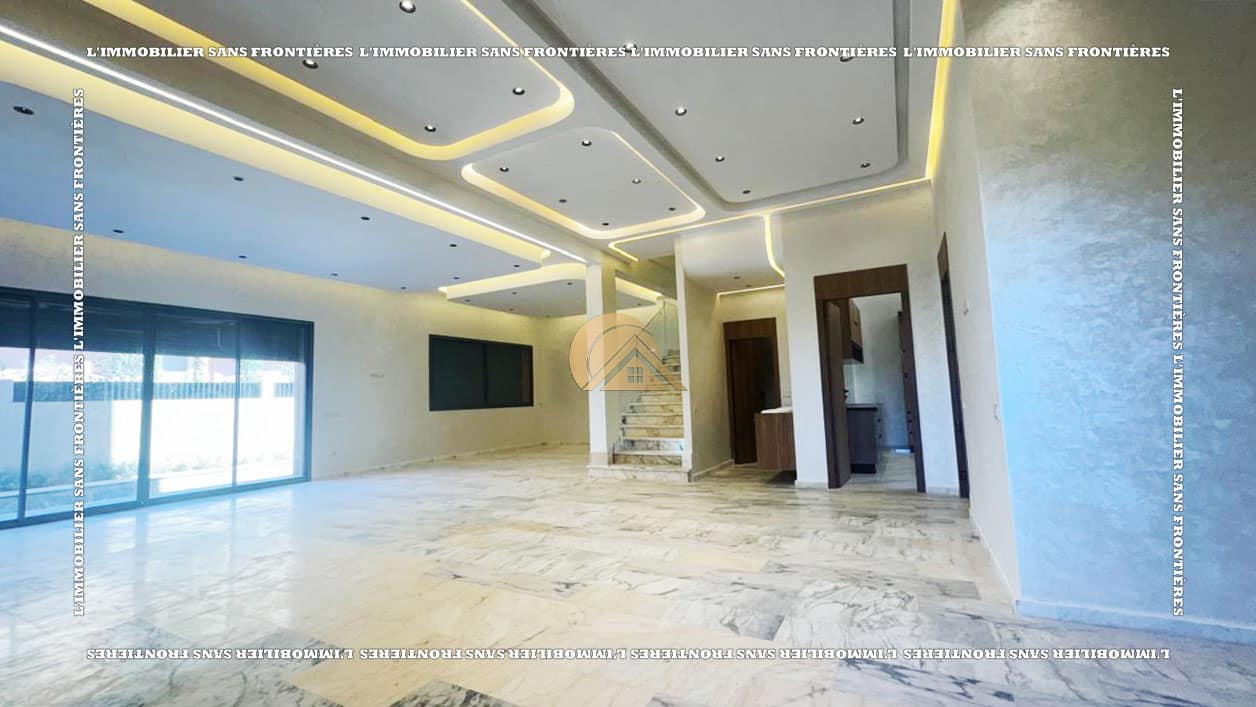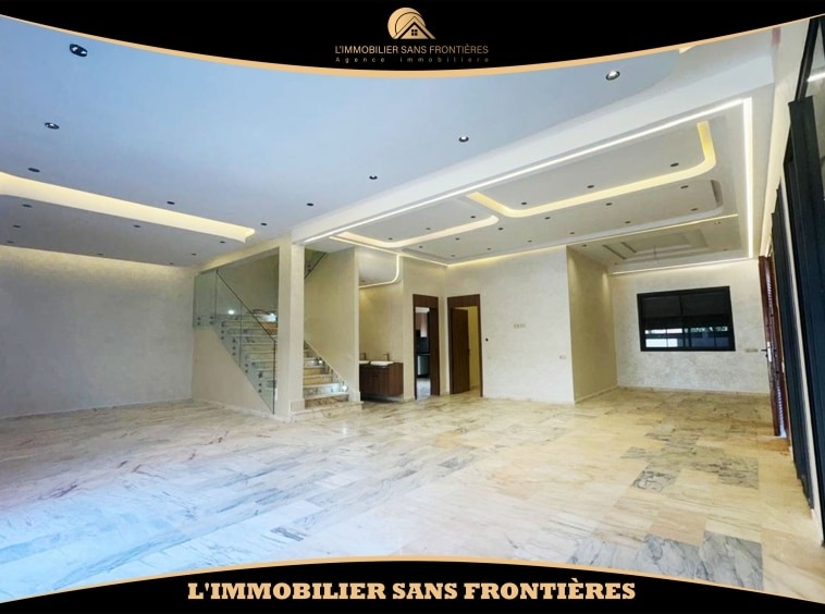 وكالة عقارات بلا حدود تعرض للبيع هذه الفيلا الفارغة الواقعة في تاركة، مراكش. تمتد على قطعة أرض بمساحة 390 م²، مع مساحة سكنية قدرها 160 م² في كل طابق، وتضم مسبحاً خاصاً وحديقة خاصة وأرضية من الرخام. وتبرز الإضاءة والمساحات الواسعة بفضل نافذة زجاجية كبيرة مطلة على المسبح.